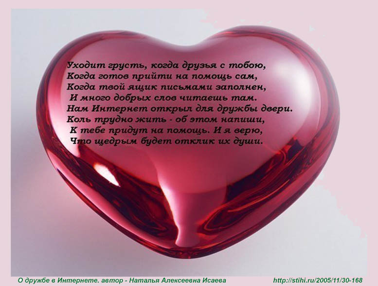 ![]() Малинина-Епифанова Наталья Алексеевна Исаева (Малинина-Епифанова, "Радость Натали", "Золотистая Пантера"). Вторая страничка на Стихофоне - Исаева Наталья Алексеевна: http://www.stihophone.ru/users.php?user=stihigladnessnatalie Родилась 9 февраля 1958 года в Москве в семье военнослужащего Алексея Николаевича и Анны Васильевны Исаевых. Публикуюсь с 1972 года. В сети Интернет с 2005 года. На главном поэтическом Сервере России Стихи.ру и Проза.ру мои странички: http://www.stihi.ru/author.html?gladness http://www.stihi.ru/author.html?epifanova08nata http://www.proza.ru/author.html?goldenpantera http://www.stihi.ru/author.html?goldenpantera На сайте Международного Союза писателей: http://www.litkonkurs.ru/?dr=17&luid=4513 Подробнее обо мне тут: http://www.stihi.ru/poems/2008/03/29/61.html Системы взглядов на жизнь и творчество: http://www.litkonkurs.ru/index.php?dr=45&tid=78328&pid=45 Мне оказали честь замечательные музыканты, написавшие и исполняющие чудесные песни на мои стихи. Я благодарна и выражаю свою признательность Дмитрию Борщеву, Анатолию Шевченко, Якову Кестельману, Игнату Горошинскому, Евгению Кудряцу, Евгению Матькину, Алексею Крупнову, Рашиду Талышинскому, Сергею Куликову, Николаю Хованскому, Ольге Карагодиной, Сергею Какпакову, Сергею Светлову, Валерию Евдокимову, Павлу Ашукину (Егорову), Евгению Егорову, Михаилу Соколову и продюсеру Николасу Дерингу. География сотрудничества такова: Россия, Украина, Германия, Португалия, Израиль. Эти песни можно послушать здесь и на вторйо страничке, а также в "Виртуальном Поэтическом Театре" и на Сервере "Музыкальный хостинг" при библиотеке Мошкова: http://music.lib.ru/editors/r/radostx_n/ Благодарю и всех создателей плейкастов с моими стихами, песнями и прозой! Опубликованные работы: